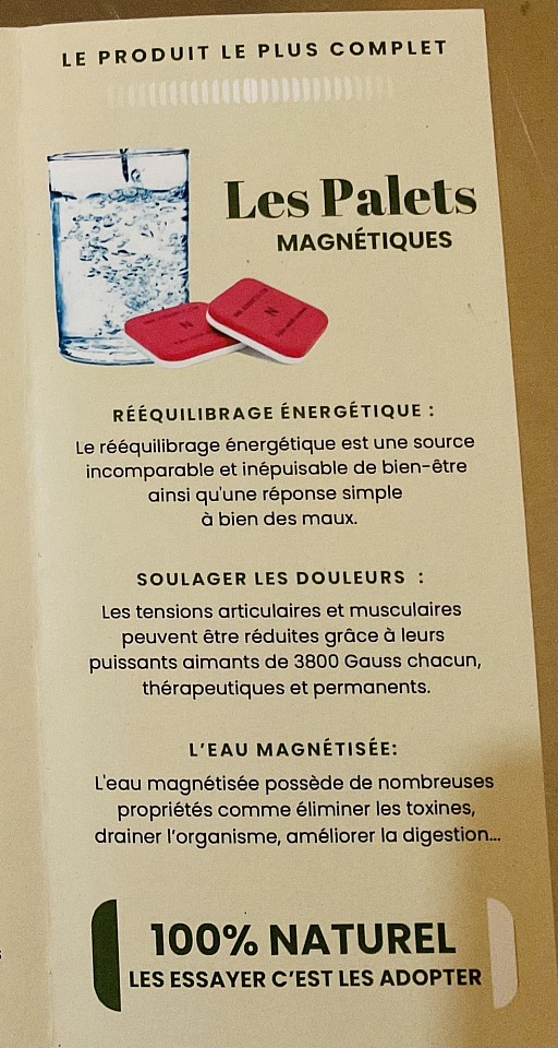 Palets magnétiques 3 en 1, soulagement, tonus, recharge de l'eau, effets immediats